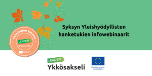 Tervetuloa syksyn yleishyödyllisten hanketukien infoon Teamsin välityksellä! Kerromme yhdistyksille suunnatuista Leader-tukimuodoista, sekä nuorille suunnatusta Ykkösmassi-rahoituksesta.