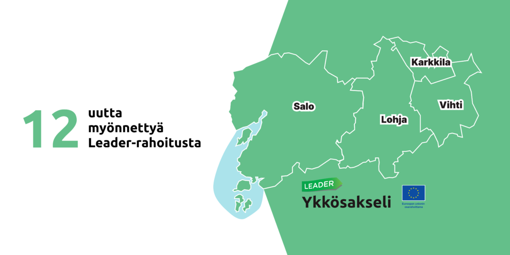 Ykkösakseli ry on myöntänyt Leader-rahoitusta 12 hankkeelle Salossa, Karkkilassa, Vihdissä ja Lohjalla. Hankkeista 11 on elinkeinollisia tukia ja yksi kohdistuu yleishyödylliseen toimintaan. Tukea myönnettiin yli 112 000 euroa. Salo Jellow Factory Oy:lle on myönnetty tukea asiantuntijapalveluihin, joiden avulla tehdään koirille soveltuvan jäätelön markkinakartoitus, markkinointistrategia ja tuotteistaminen. Virtavesien hoitoyhdistys Virho ry.:lle on myönnetty rahoitusta kahteen […]